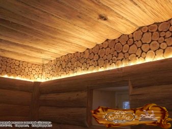 Липовый горбыль с лыком – идеальный вариант отделки потолка бани в натуральном стиле.