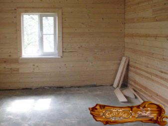 Вариант комбинированного применения материалов – досок и вагонки. Обратите внимание, что на полу обычная, хорошо выровненная бетонная стяжка.