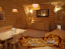 Изучите далее интересные примеры интерьерного оформления бань.