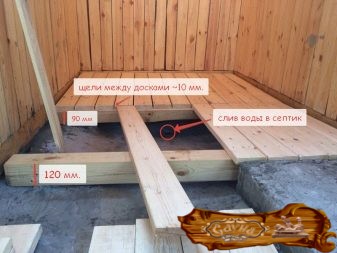Пол парной может быть из бетона или деревянным. Бетонные или отделанные камнем полы холодные. Поэтому чаще отдается предпочтение дереву. Деревянные полы предполагают подготовку фундамента, на который укладываются балки, поверх них укладываются лаги. Пустоты между балками и лагами заполняются утеплителем, в качестве которого выбирается керамзит. Поверх утеплителя укладывается пароизоляция, гидроизоляция, затем обустраивается финишный пол.
