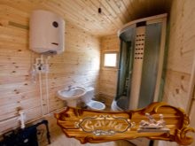 Современная баня предполагает обустройство помывочной комнаты. Здесь допускается к установке полноценная сантехника. Зачастую это место представляет собой бассейн невообразимых форм. За неимением площади для обустройства бассейна в помывочной устраиваются душевые. Стильные современные душевые кабинки и места много не займут, и в интерьер бани хорошо впишутся. Для душевых даже необязательно отдельную комнату выделять.