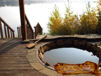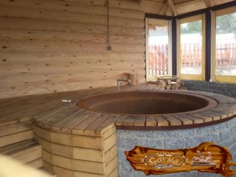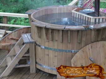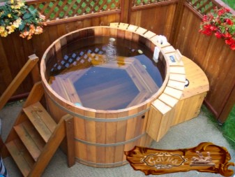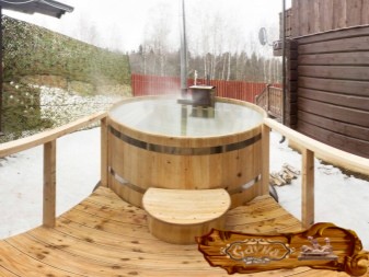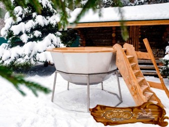 Материалом изготовления чаще всего выступает кедр, так как у него много лечебных свойств. Конструкция должна иметь удобную лестницу, чтобы можно было удобно забираться в чан.