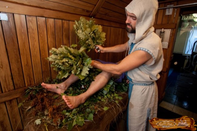 По окончании растирки веником надо выполнить легкие движения, едва касаясь тела. Последний этап заключается в обработке тела веником, который нужно опускать время от времени в холодную воду.