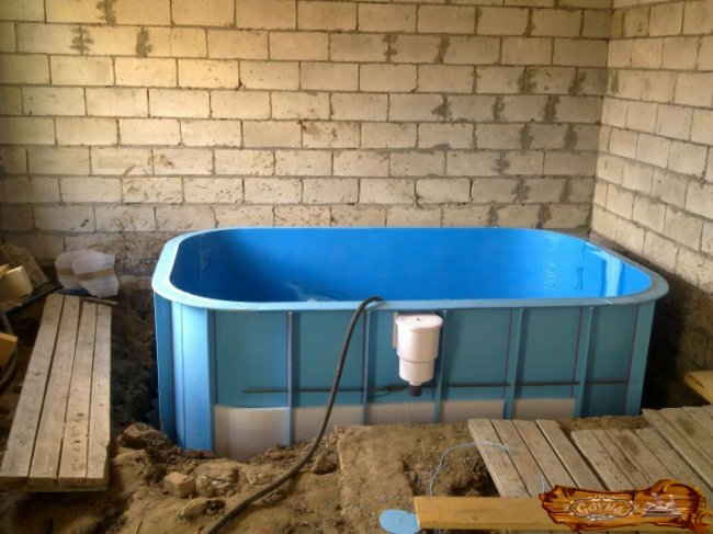 В зависимости от того, как именно будет устанавливаться купель, процесс ее монтажа будет отличаться. В случае напольной конструкции рекомендуется создать плотный каркас, который визуально сделает изделие более привлекательным и будет удерживать стенки емкости от деформации.