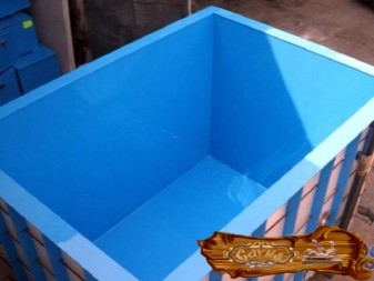 Наибольшей популярностью пользуются голубые купели, в которых вода приобретает приятный оттенок. Помимо цветовых характеристик стоит сказать и о размерах, которые варьируются в зависимости от количества людей, которые будут пользоваться купелью.