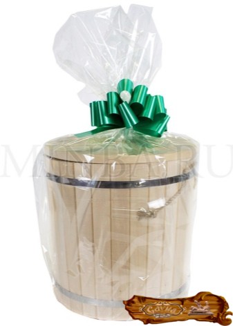 Банный набор «Стандарт» также от российской компании «Наш Кедр» включает в себя классическую 10-литровую шайку и удобный ковш.