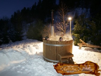 По перечисленным причинам следует попробовать установить такую ванную на дачном участке или возле частного дома.