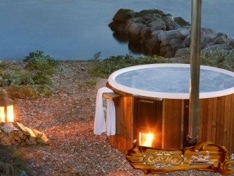 Небольшие купели нередко берут с собой на озеро, если температура воды в водоеме не позволяет купаться. Так поступать целесообразно, если в семье маленькие дети. Компактные чаны изготавливаются из легкого пластика или специального, водонепроницаемого материала. Но в этом случае придется возить с собой небольшую буржуйку для подогрева воды. Конечно – это не финская баня, но расслабиться, получить удовольствие на лоне природы, несомненно, получится.