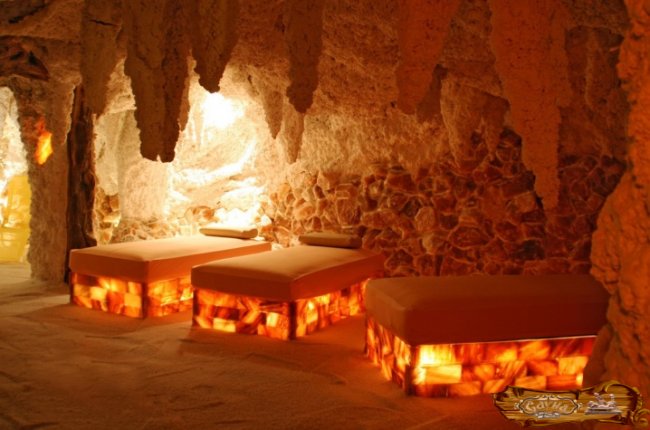 Надо отметить, что такие пещеры успокаивают благодаря не только целебным характеристикам, но и интересным визуальным эффектам. Искусственный свет, падающий на стены из соли, создает невероятной красоты завораживающие блики. Дополнить впечатление можно с помощью подсветки в прохладных оттенках. Однако тем, кто планирует делать пещеру, нужно помнить, что от сильной влажности соль будет таять, особенно это касается полов.