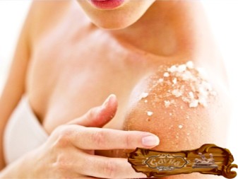 Этот продукт смешивают с солью в пропорции 1: 2, а затем оставляют на полчаса настаиваться. Скрабирование полученной смесью проводят только на разогретом теле.