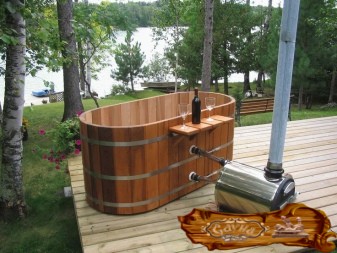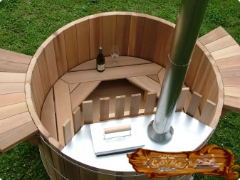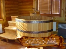 Особый интерес в последнее время вызывают купели, выполненные в японском стиле. Такие ванны называют офуро. Отличаются они от традиционных русских купелей установленной металлической печью, посредством которой вода внутри нагревается.