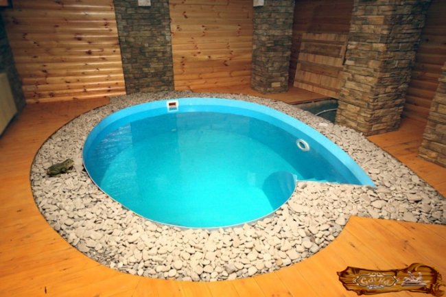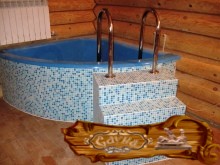 Форма, которой обладает чаша, может быть произвольной и зависит лишь от пожеланий собственника бани. Это же касается декоративной отделки внутри и снаружи.