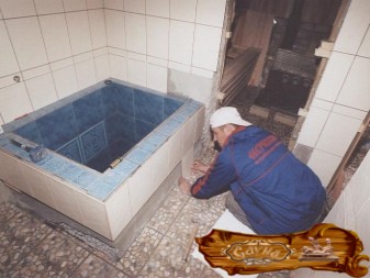Положить сверху плитку можно и самостоятельно. Если использовать качественные строительные материалы, то такая емкость прослужит долго.