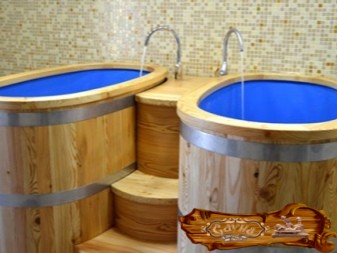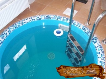 Купель изготавливается из разных пород дерева, она может быть бетонной или пластиковой, реже встречаются металлические изделия. Облицовка зависит от фантазии производителя.
