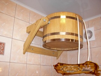 Самые простые в исполнении – обливные конструкции, они имеют небольшой объем и устанавливаются на стену. Когда требуется, человек просто подходит, дергает за веревку и обрушивает на себя поток воды.