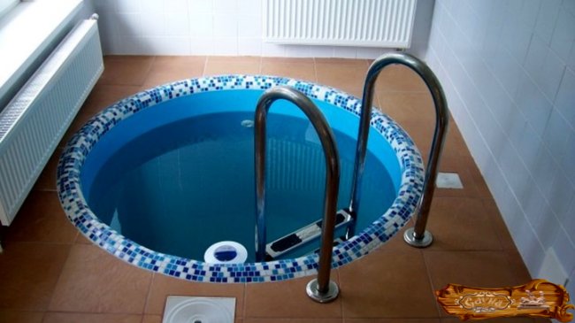 Чаще всего углубленные купели ставят в предбаннике. Дополнительно монтируют необходимые коммуникации.
