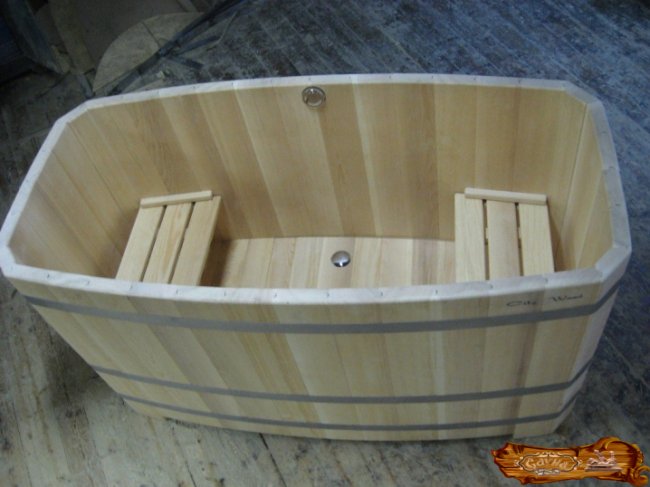 Однако за такими изделиями требуется тщательно ухаживать, поскольку дерево не переносит пересыхания. В ванне всегда должно находиться небольшое количество воды. Устанавливать деревянные ванны следует на идеально ровную поверхность.