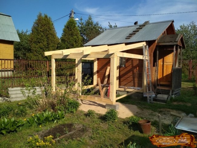 Сооружение, размещенное по периметру бани. Конструкция защищает строение от негативного воздействия внешней среды и возводится под одной кровлей с парилкой.