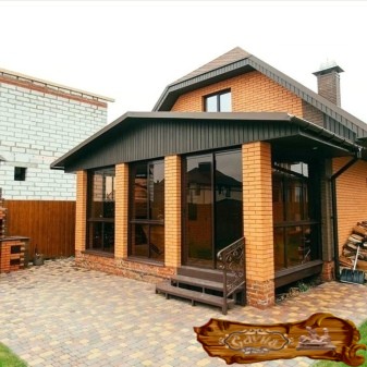 Встречаются также и беседки-трансформеры. Это функциональные и очень удобные пристройки, возводимые из раздвижных профилей.