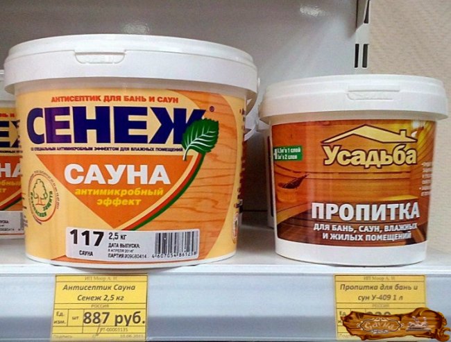 Натуральный материал целесообразно защитить от плесневения и образования грибка. Помочь в этом могут обработки с применением специальных растворов. Так, для защиты стен в парильной их можно покрыть высокоэффективным составом Supi Saunasuoja. Если запланирована обработка полков, то отличным решением станет пропитка Supi Laudesuoja.