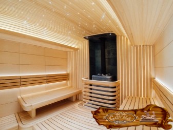 Замечено, что в парилке русской бани дорогая древесина активно впитывает воду, конденсат, запахи веников из березы, эвкалипта и дуба, которые применяют в банной процедуре.