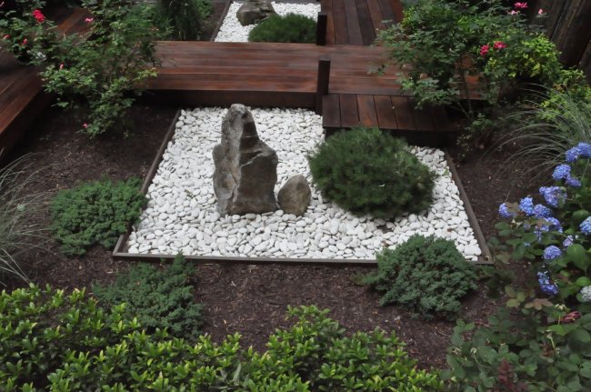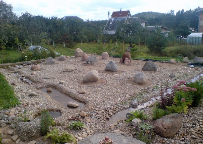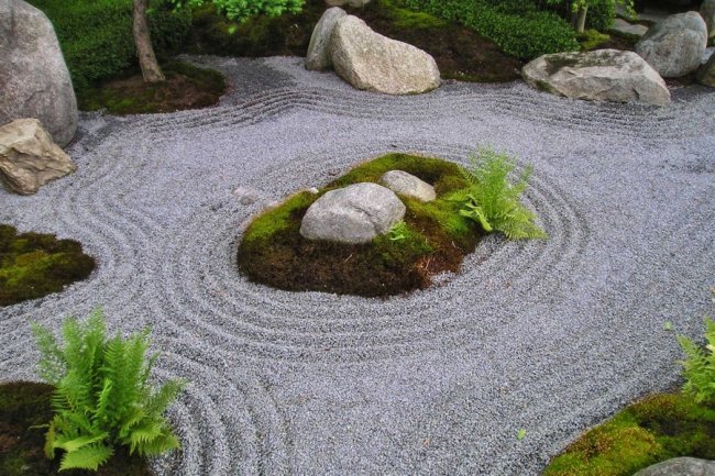 У многих сад камней вызывает ощущение пустоты. Но на самом деле достижение эффекта безграничности происходит по определенным правилам. При самостоятельном создании такого ландшафтного дизайна необходимо выбирать только устойчивые булыжники и миниатюрные камешки. Они не должны выглядеть просто разбросанными. Для этого необходимо изначально продумать идею рисунка. Сравнить с уже готовым фото или картинкой. Глубину вкапывания выбирают в зависимости от формы камней и особенностей рельефа местности.