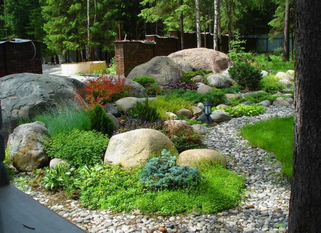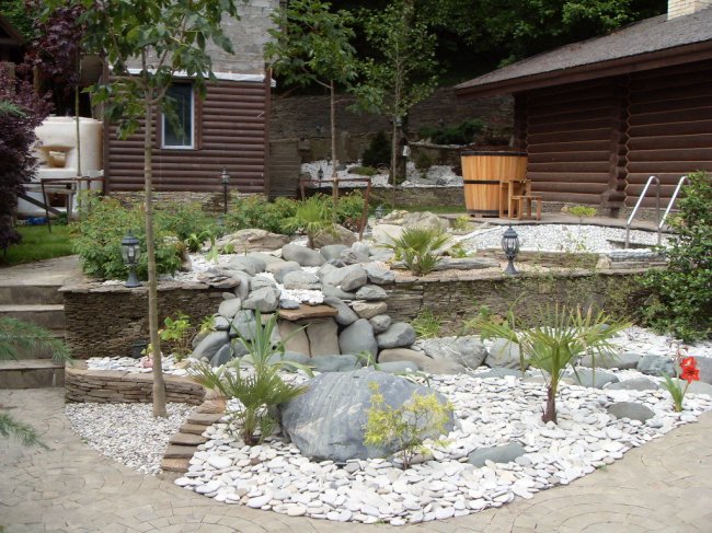 Интересный элемент декора, как сад камней, является частью буддийского искусства. Такого не встретить ни в одной другой культуре. Необычные для европейцев философские сады наделены изяществом и притягательной простотой. Каменная композиция – отличный вариант для украшения дачного участка. Современные дизайнеры предлагают множество способов реализации такой идеи. На родине потрясающего декора, в Японии, его установкой могут заниматься только мастера. В наших регионах установить необычное украшение на даче может каждый своими руками. Содержание История каменных садов Стиль и назначение сада Основные правила создания своими руками Правила фэн-шуй Подготовка: выбор места и обустройство площадки Необходимые материалы и инструменты Выбор основных элементов Правила составления композиций и расстановка камней Дополнительные элементы обустройства сада Выбор растений для каменного сада Уход за садом камней Известные сады камней Заключение История каменных садов В японском саду булыжники различного размера и формы символизируют горы. Впервые их начали использовать в 14 веке. Монах и мастер садового оформления Мусо Сосэки стал прародителем уникальных композиций. Разбросанные камни по земле в определенном порядке символизируют противостояние невзгодам, долгую жизнь, поскольку столетиями остаются неизменными. Ранее они создавались только при храмах и монастырях, а их основным назначением было лишь доставление эстетического удовольствия. Дословно сад камней с японского языка переводится как «сухие воды и горы». Согласно легенде, один моряк спас от смерти черепаху. И она в знак благодарности показала ему один из пяти островов, где жили бессмертные. С тех пор люди стали украшать свои участки каменистым декором по определенным правилам. Самих элементов должно быть строго нечетное количество, а их число может быть кратно только трем или пяти. Стиль и назначение сада На первый взгляд может показаться, что валуны и различные минералы в уличной композиции расположены хаотично. На самом деле место для установки элементов выбирается по определенным правилам. В первую очередь обозначают основную точку созерцания. Именно на нее будет ориентироваться сад. В учет берут часы вероятного наблюдения, чтобы не испортить удовольствие созерцания палящим солнцем и чрезмерной тенью. Японские сады камней всегда асимметричные, наполненные элементами разных размеров и форм. Декор никогда не размещается параллельно. Все объекты должны хорошо просматриваться под любым углом обзора и создавать семиугольную геометрическую сеть линий. При наличии на участке водоема, следует продумать эффект отражения камней в воде. Главная задача сада камней – помочь настроиться и расслабиться. Если наблюдать композицию всю полностью, можно увидеть чарующие острова с отходящими от них волнами в определенном направлении. Основные правила создания своими руками У многих сад камней вызывает ощущение пустоты. Но на самом деле достижение эффекта безграничности происходит по определенным правилам. При самостоятельном создании такого ландшафтного дизайна необходимо выбирать только устойчивые булыжники и миниатюрные камешки. Они не должны выглядеть просто разбросанными. Для этого необходимо изначально продумать идею рисунка. Сравнить с уже готовым фо