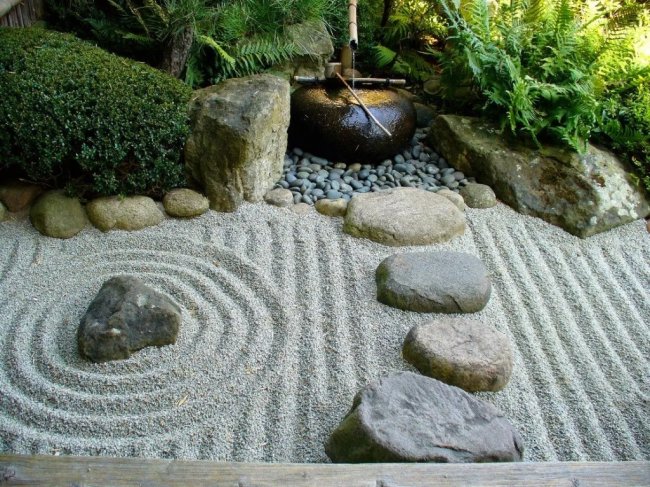 Сад камней по фэн-шуй создают для релаксации и восстановления сил. Все элементы там считаются источниками жизни и символизируют землю. Они должны быть расположены максимально естественно. Необходимая часть декора – любой водный элемент в виде ручья или озера. Расположенные у водоема камни будут дополнять энергию друг друга.