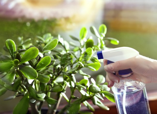 Монетное дерево не нуждается в контроле влажной среды. Сухой комнатный воздух летом не наносит ему вреда. Растение спокойно пускает побеги и наращивает листья. Один раз в месяц его можно опрыскивать из пульверизатора или обдавать водой из душа. В последнем случае надо обязательно закрыть землю полиэтиленом.