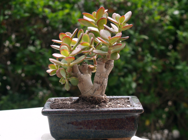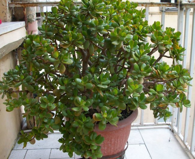 Любители суккулентов обязательно имеют в своей коллекции хотя бы одного представителя вида толстянок. Неприхотливое денежное дерево – элегантное украшение интерьера. При правильном уходе крассула будет напоминать настоящее дерево с круглыми листами в виде монет. Существует поверье, что большое денежное дерево притягивает в дом достаток и благополучие. Выращенное из ростка, оно способно улучшить домашнюю обстановку, принести не только эстетическое наслаждение, но и быть полезным в лечении многих болезней. Содержание О растении Виды денежного дерева Советы и правила выращивания и ухода за растением Почва и размер горшка Температура Влажность воздуха Освещение Полив Подкормка и удобрение Формирование кроны Пересадка Цветение Способы размножения Черенками и листом Семенами Болезни и вредители Лечебные свойства денежного дерева Для кожи и волос Для суставов и сосудов Для слизистых оболочек Заключение О растении Комнатный многолетник родом из стран Южного полушария, поэтому предпочитает солнечную сторону и сухую землю. Полив, естественно, необходим, но с большими интервалами. Чтобы дерево начало работать и приносить богатство своему владельцу, его следует расположить в квартире по фен-шую – у южного, юго-восточного оконного проема. От того насколько зеленые и мясистые листья, будет зависеть финансовое положение семьи. Лиственно-декоративное растение относится к роду суккулентов. Отлично переносит засуху, благодаря особенному строению листьев – они накапливают влагу. В домашних условиях монетное дерево может вырасти до 2-х метров. В природе встречаются 4-х метровые экземпляры. Большинство толстянок – многолетники, но встречаются и однолетние виды. Сразу после цветения они погибают. Чтобы увидеть денежное дерево цветущим, потребуется хорошо потрудиться и запастись терпением. Нежные белые цветки появятся только при содержании растения в правильных условиях. Виды денежного дерева Всего насчитывается около 300-х видов монетных деревьев. Многие экземпляры отлично приживаются не только в специальных оранжереях, но и в простых квартирных условиях. На комнатное содержание рассчитаны древовидные, почвопокровные, колосовидные, декоративно-цветущие виды крассул. «Денежное дерево» принадлежит к древовидным видам растений. В эту группу входят привычные толстянки, имеющие характерный одеревенелый ствол, плотные листочки. Некоторые экземпляры внешне могут кардинально отличаться друг от друга, иметь разное описание. В свою очередь, они делятся на следующие сорта: Овата. Также имеет название «Монетное деревце», «Медвежье ушко». Максимальная высота дерева – 2 м, толщина ствола – 30 см. Листочки ярко-изумрудного цвета эллиптической формы небольшого размера. Некоторые разновидности Оваты имеют красную каемку по периметру листов. Цветет растение белым цветом, соцветия собраны в виде зонтиков. Из такого денежного дерева легко формировать бонсай, ветвистую композицию. Овата Минор. Представители вида имеют красивую, нетривиальную форму. Миниатюрное растение едва достигает в высоту 20 см при максимальной ширине ствола – 2 см. Интересный окрас зеленых листьев с алым оттенком делает растение идеальным для создания домашних композиций. Овата Сансет. Выделяется выразительной красно-желто-белой росписью на листьях. Красивый ги