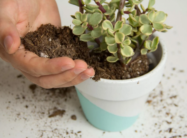 Денежному дереву подходит только рыхлый грунт с большим количеством песка и дренажа. Воздухопроницаемая структура будет предупреждать застой жидкости. После полива излишки влаги должны выходить в поддон, а не оставаться в почве.