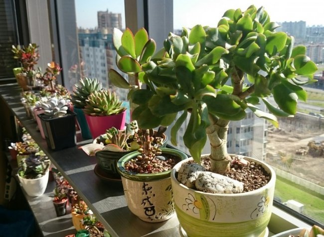 Идеальное место для представителей суккулентов – подоконник. Лучше, если окна будут выходить на юг, юго-восток. На южном окне растения придется притенять, когда солнце будет в зените. Северная сторона не является табу для толстянки. Но, денежное дерево пойдет расти ввысь, остановится ветвление, а стебли станут слабыми и перестанут деревенеть.