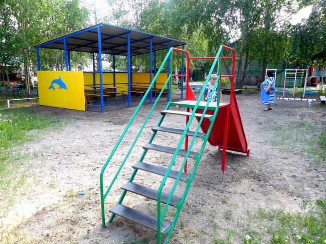 Не обязательно размещать все предметы в пределах одного участка – достаточно трех-четырех. В некоторых садиках устанавливаются целые игровые комплексы, включающие в себя горки, лесенки, кольца, всякие «крутилки-нажималки» (для развития самых маленьких), домики, паровозики и др.