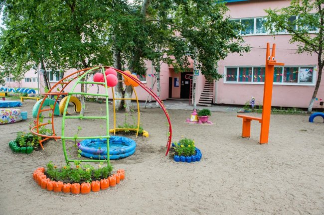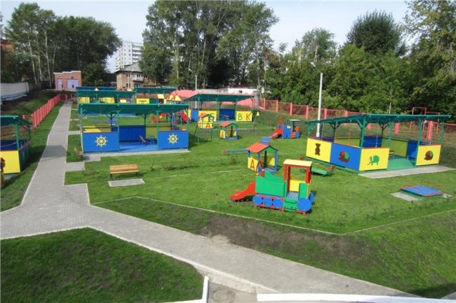 Чувство прекрасного нужно прививать ребенку с самого раннего возраста. Желательно, чтобы вокруг него все было хорошо и красиво. В большинстве случаев оформление участка в детском саду производится не «крутыми» дизайнерами, а обычными воспитателями и родителями. Весь декор, располагающийся на детской площадке, делается максимально безопасным, обычно окрашивается в яркие тона. Содержание Требования к безопасности на детских площадках Особенности оформления Размер, структура участка Выбор материала для оформления Создание игровой зоны Создание спортивной площадки Какое покрытие использовать на детской площадке Планирование, дизайн дорожек Озеленение участка: выбираем деревья, кустарники Организация места отдыха: как расположить беседки, павильоны Декоративное оформление участка детского сада к лету Декоративное оформление участка детского сада к осени Декоративное оформление участка детского сада зимой Декоративное оформление участка детского сада весной Заключение Требования к безопасности на детских площадках Основные требования к безопасности предназначенных для детей площадок регулируются нормативными документами, в которых учитываются все причины травматизма, прописываются меры по его предотвращению. Основные стандарты таковы: отсутствие острых углов, кромок в пределах досягаемости детей; высота и конструкция делается подходящей для той или иной возрастной группы; все оборудование монтируется максимально устойчиво, конструкция проектируется таким образом, чтобы при необходимости взрослый мог получить доступ к любой его части и помочь ребенку; расстояния между ступеньками, частями перил, прочими деталями должны исключать застревание головы, если малыш решил ее туда сунуть; для самых маленьких везде создаются перила, соответствующие их росту; покрытие вблизи горок, лестниц, качелей делается ударосмягчающим; на площадке должно быть достаточно места, чтобы бегать, играть; использование токсичных материалов, скользких покрытий недопустимо; толщина перил, других подобных элементов выполняется такой, чтобы ребенок легко мог их обхватить рукой; поврежденные, изношенные детали оборудования, декора необходимо своевременно заменять, ремонтировать. Особенности оформления Оформление конкретного участка садика зависит от его размеров – чем пространство обширнее, тем больше оборудования, декоративных и функциональных элементов там разместится. На стандартной площадке размещаются примерно такие элементы: песочница; беседка (в том числе полностью закрытая); горка высоты, соответствущей возрасту пользователей; качели и качалки; лесенки и «лазалки»; лабиринт; игровой домик. Не обязательно размещать все предметы в пределах одного участка – достаточно трех-четырех. В некоторых садиках устанавливаются целые игровые комплексы, включающие в себя горки, лесенки, кольца, всякие «крутилки-нажималки» (для развития самых маленьких), домики, паровозики и др. Размер, структура участка Примерная норма площади, в расчете на одного ребенка, зависит от общего количества воспитанников, плотности застройки района, составляя около 35-60 кв. м. Норма пространства под навесами, на террасах, в беседках – 1,5 кв. м. на человека. На территории должно быть достаточное количество солнечных и затененных мест, а также сливы, отвод