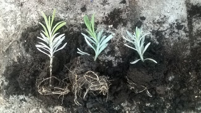Для этого берут молодые одревесневшие побеги здорового однолетнего куста. С черенка срезают соцветие и убирают нижние листочки до высоты 3—4 см. В идеале используют стебли, которые еще не успели зацвести. Для черенкования готовят сухой песок, грунт, глиняные черепки и средние горшки. Черепки кладут на дно горшочка, сверху организовывают слой уже увлажненного песка. На дренажный слой затем высыпают землю и все трамбуют. Сверху делают еще одну прослойку влажного песка — толщиной 1,5 см. Сам грунт готовят из нескольких компонентов. Применяют песочный, листовой и дерновый в равном соотношении. Подготовленный черенок обрабатывают стимуляторами роста и очищенной стороной закапывают в землю. Укоренение улучшают за счет «массажа» нижней части побега. Иногда организовывают мини-теплицу: лаванду аккуратно накрывают полиэтиленовой пленкой.