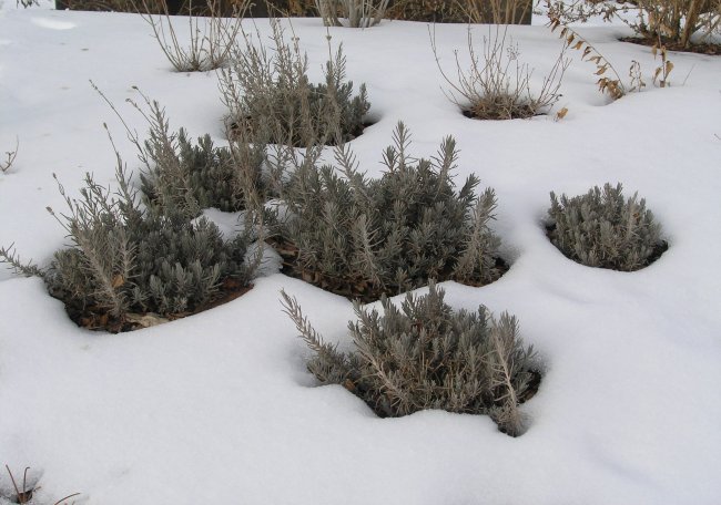Перед зимовкой растения в полевых условиях следует организовать укрытие. При этом, по утверждениям экспертов, лаванда переносит мороз хорошо даже при кратковременной температуре в -25 °C. Если в регионе бывают длительные периоды с температурой около этой отметки или она вообще опускается ниже нее, то укрытие понадобится качественное. Не стоит забывать и о том, что зимы бывают дождливыми. От навеса лучше не отказываться. В конце переходного сезона кусты подрезают. На огороде кладут веточки хвойных деревьев — в качестве утепления. Листья не подойдут, ведь от этого в кусте лаванды могут начаться процессы гниения. Благодаря мульче из компоста удастся избежать рыхлений, прополок, подкормок. Таким образом, уход станет проще. Потребуется только обрезать растение, чтобы оно укреплялось и затем обильно цвело.