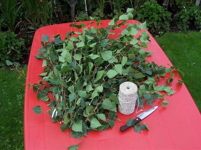 Длина веток для веника должны быть не менее пятидесяти сантиметров. Их перебирают и сортируют, нижние веточки и листья удаляют, а потом попарно связывают ниткой или бечевкой. Хранят готовые веники в прохладном помещении, хорошо проветриваемом имеющем крышу. Нельзя допускать попадания на листья солнечного света, так как от этого они будут желтеть и быстро опадать. Количество веток и величина веника могут быть произвольными, но должны соблюдаться такие условия: веник должен по длине подходить для парильщика, быть удобен и не тяжел. Помните, что в намоченном состоянии этот банный аксессуар становится вдвое тяжелее сухого.