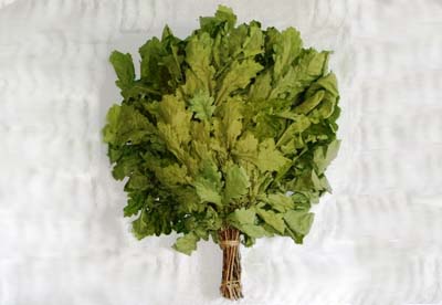 Дубовый веник для бани Русская баня – не баня, если в ней не используется хлесткий ароматный веник. Традиция ходить в баню с веником идет с глубокой древности. Наши предки заметили, что он удваивает пользу, которую дает парилка, его применяли знахари для изгнания болезней. Они знали, что каждый – березовый, хвойный или дубовый веник для бани, имеет свои свойства, особенности, обладает особой силой и лечит разные недуги. Интересно, что кроме таких традиционных веников также применялись полынные, крапивные и, как не странно, чесночные. Дубовый веник для бани В русском народном эпосе, песнях и сказаниях, самым популярным деревом была береза, которую сравнивали со стройной девицей, обладающей тонким станом, мягкой и покладистой. Но на втором месте стоит дуб, символизирующий крепкое мужское начало, прочность, надежность, мощь. Как патриоты родной страны и приверженцы банных процедур, давайте рассмотрим и дубовый веник с этой точки зрения. Хоть такой веник и занимает в рейтинге популярности второе место, но он ничем не уступает березовому, просто, дубы не так распространены, как белоствольные красавицы, да и заготовка их, все же, сложнее. Сами посудите: какую ветку сложнее сломать – дубовую или березовую? Потому дубовый крепыш и был отодвинут нашими изнеженными городскими жителями на второй план из-за таких трудностей. Дуб всегда считался «теплым» деревом с хорошей энергетикой. Потому на нем всегда селилось множество всякой живности, в том числе жучков и паучков. В древности не было никаких лекарств, снимающих боль, но люди нашли великолепное средство: они избавлялись от зубной боли, прижимаясь к дубу и забирая его живительную силу. Вспомните, сколько растет этот могучий красавец. Его не зря называют могучим и вековым, ведь ему может быть и сто и двести лет, и такой возраст вовсе не предел. Возьмите в руки дубовый веник и поднимите его над головой. Не ощущаете ли вы себя властелином мира, который держит в руках невиданную силу и энергию. Этим лишь нужно правильно распорядиться, тогда эта мощь наполнит вас полностью, отгонит все болезни, нормализует психику, снимет стресс, доставит невиданное удовольствие и отлично расслабит. Заготовка Теперь остановимся на том, как правильно заготовить дубовый веник для бани. В средней полосе России оптимальным временем для этого является от середины июля и до конца лета. Однако, «осенние» веники тоже неплохи, но только древесина у них ломкая и хрупкая. Лучше всего ветки срезать не с одиночных деревьев, а растущих в дубраве, так как они долговечнее и лучше по качеству. Скорее всего, на состояние прочности веток влияет достаточное количество влаги при росте побегов и постоянная затемненность. У дуба практически отсутствуют одиночные прутики, потому срывают широкую разлапистую ветку, с роскошным листовым покрытием. Иногда, чтобы найти таковую, самую лучшую, приходится высоко забираться на дерево и даже спиливать большие ветви, чтобы потом, уже в процессе вязки веников, разобрать на более мелкие. Если найдется корневая поросль или подлесок, то дубовые ветки заготавливают так же, как и березовые, отрезая боковые побеги и оставляя растущими центральные, чтобы будущее дерево продолжало расти. Ветки при укладке веника собирают с небольшим смещением, чтобы форма изделия получилась веерной. Все происходит б
