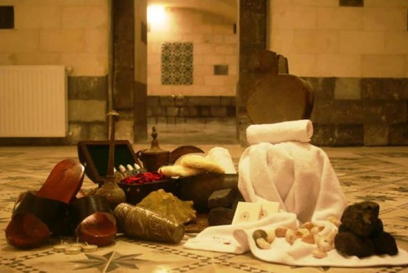 В старину, в хамаме, были такие аксессуары для турецкой бани: специальная ткань из шелка или хлопка — пештамал, деревянные башмаки – налин, препятствующие скольжению на мокром полу, их украшали серебром или перламутром, для массажа использовали кесе — грубую рукавицу. Кроме того, здесь было множество разнообразных шкатулочек, золоченых мыльниц, чаш для хны, зеркала, флаконов для духов и так далее. Некоторые такие предметы используются и по сей день.