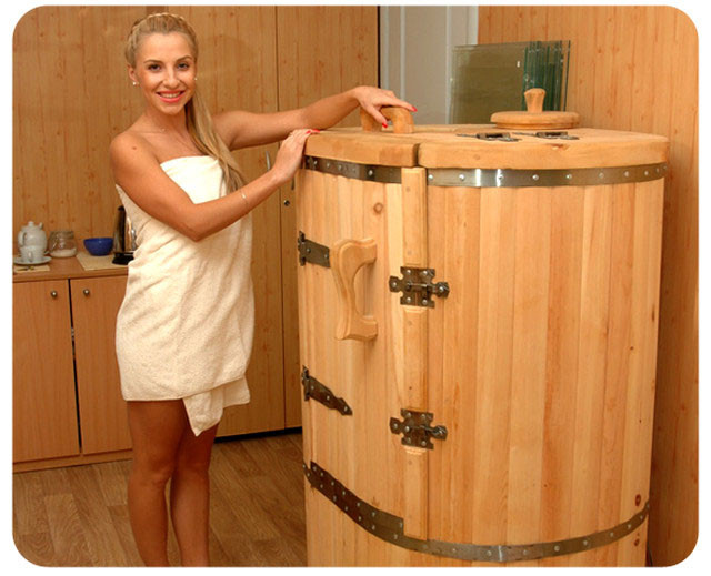 Фитобочки для бани Кедровые бочки – это фитобочки для бани, они являются особым методом, который основан на целебном воздействии насыщенного целебным концентратом трав пара и лечебного настоя. Эта деревянная бочка – своего рода мини-сауна, в ней тело человека хорошо прогревается благодаря высокой температуре, при этом голова остается снаружи. Организм человека – саморегулирующаяся система, способная приспосабливаться к разным условиям, однако, такой ресурс не бесконечен и его нужно периодически оздоравливать, поддерживать и подкреплять. Современные люди ведут активный образ жизни, полной стрессовых ситуации, они достаточно редко бывают на свежем воздухе, мало двигаются, питаются несбалансированно, имеют много вредных привычек. Все это отрицательно сказывается на здоровье и даже способно подорвать достаточно сильное. Но, к счастью, сама природа подсказывает и помогает эффективно справиться с этой проблемой. Одно из средств – процедуры в фитобочке. Фитобочки для бани из кедра Фитобочки делают из алтайского или сибирского кедра. Эта древесина выделяет фитонциды – особые вещества, обладающие биологически активными и обеззараживающими свойствами. Они позволяют излечить такие недуги, как головные боли, стрессы, заболевания органов дыхания. Полезные вещества из кедра лучше выделяются при высокой температуре. Бочки делаются по разным технологиям, они могут быть цельными, то есть, их выдалбливают из широкой части ствола дерева. Еще один способ – бревна раскалывают на клепки, такая технология называется колотой, изделие получается мало подверженным поражению грибкам и влаге. Также бочки производят бондари из высушенных кедровых досок, которые скрепляют обручами. Возможно еще изготовление по столярной технологии из досок с применением клея и разных крепежных материалов. В этом случае получается квадратная бочка, собираемая из клееных щитов, как деревянная мебель. Процедура Банная процедура в фитобочке выглядит так. Человека помещают в бочку, чтобы вне действия горячего пара находилась только голова. Сеанс длится пятнадцать минут, в его процессе тело подвергается воздействию пара. Сосуды головного мозга, при этом, не получают нагрузки, как и дыхательные пути. В то же время, кровеносные сосуды при высокой температуре расширяются, кровоснабжение кожи улучшается, усиливаются обменные процессы, воздействию подвергаются суставы, все внутренние органы, мышцы. При этом, выделяется углекислый газ, лучше усваивается кислород, человек начинает активно потеть. Это позволяет вывести из организма через поры кожи шлаки, токсины и продукты обмена веществ. То есть, в сущности, организм усиленно оздоравливается и обновляется на клеточном уровне. Сердце и дыхание никакой усиленной нагрузки не получают, потому что голова находится снаружи, парильщик дышит обычным, свежим воздухом. Потому у процедуры, получаемой посредством кедровой бочки, противопоказаний меньше, чем у сауны и русской бани. Еще больший эффект получится, если после нее сделать массаж. Совмещенная с ним спа процедура дает отличный результат для похудения. Польза и противопоказания Фитобочки для бани позволяют получить полезные паровые процедуры, которые приводят к таким результатам: очищает организм от токсинов, шлаков, продуктов обмена; лечит синдром хроническ
