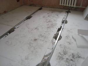 Маячки для заливки пола нельзя монтировать на неподготовленную поверхность, иначе клеевой состав, на который будем их закреплять, отстанет от неё и маяк не будет держаться. Для подготовки поверхности необходимо выполнить следующее: