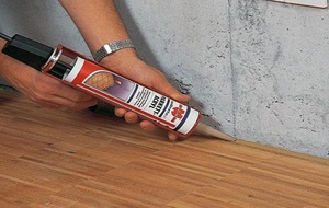 Эластичный материал подойдёт для полов, которые «играют». Если нет возможности их прочно зафиксировать, то рекомендуется воспользоваться силиконовым герметиком.