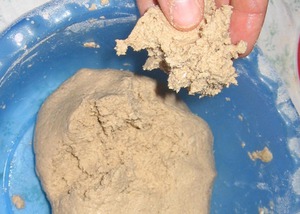 опилки хорошо перемешать и добавить в них клей (можно использовать столярный), смесь должна получиться тягучей;