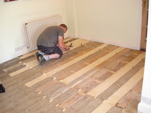 Если между половиц образовалось большое количество различного размера щелей, то заделывать их придётся очень долго. Проще будет использовать в качестве покрытия фанеру или плиты ДСП, на которые потом настилается финишное покрытие.