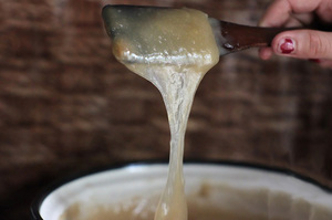 Перед работой массу следует подогреть. Просыхает такой раствор в течение двух недель. Только после этого поверхность выравнивается абразивными материалами.