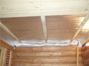 Учтите, что строительством каркасной бани в обязательном порядке требует проведения теплоизоляции потолка. Если же баня возводится из бревен, то эту работу можно не проводить. Здесь можно ограничиться установкой на потолке досок толщиной не менее 6 см и укладкой минеральной ваты слоем 15 см.