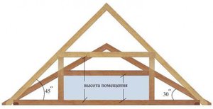 У двускатной крыши стандартной конструкции углы наклона чаще всего не превышают 30-50°. Но между углами наклона разных скатов могут наблюдаться существенные отличия.