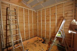 Суть этого этапа заключается в изготовлении обрешётки, для которой берут деревянные бруски разного диаметра. Всё зависит от толщины выбранного утеплителя. Чаще всего каркас делают из брусков размерами 20 X 50.