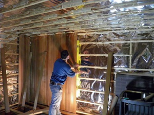 На начальном этапе выполняется подготовка, после чего переходят к установке обрешётки, затем начинается монтаж изоляции и утеплителя, а завершается работа креплением планок и нанесением защитных составов.