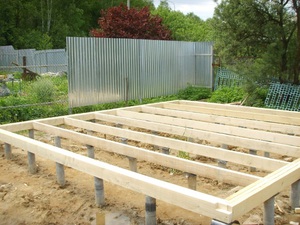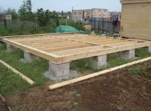 Небольшой вес каркасно-щитовой бани даёт возможность ставить её на столбчатый фундамент. Число столбов зависит от габаритов строения и её веса. Столбы должны находиться обязательно по углам строения, по краям внутренних стенок и в местах их перекрещивания.